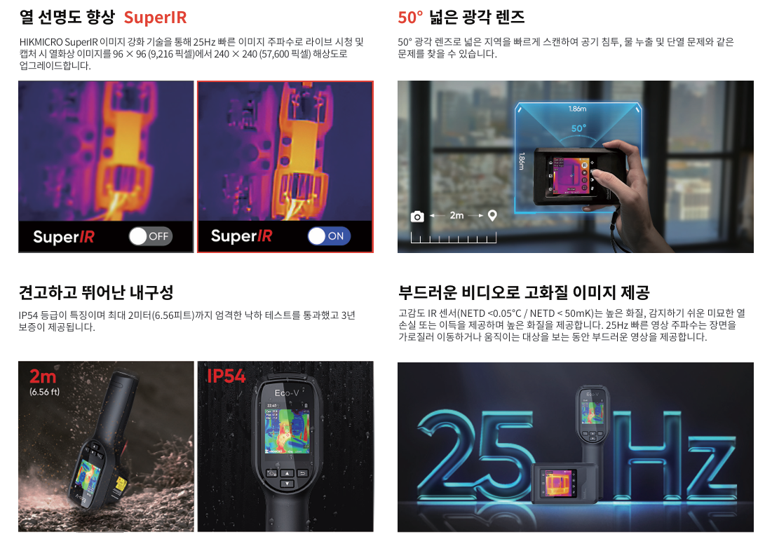 - 정밀한 온도 감지와 선명한 열영상 구현 가능